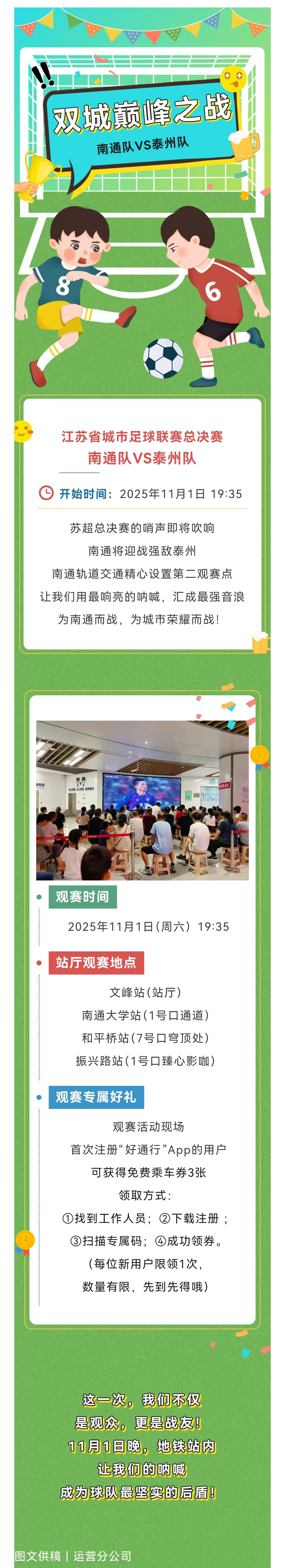 本周六,苏超巅峰之战,地铁观赛点等您来!