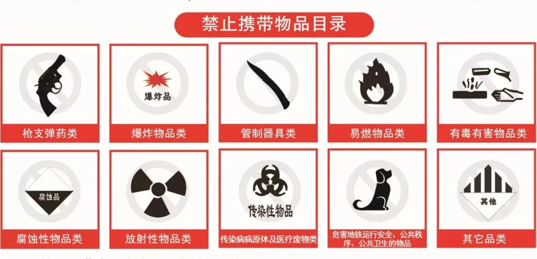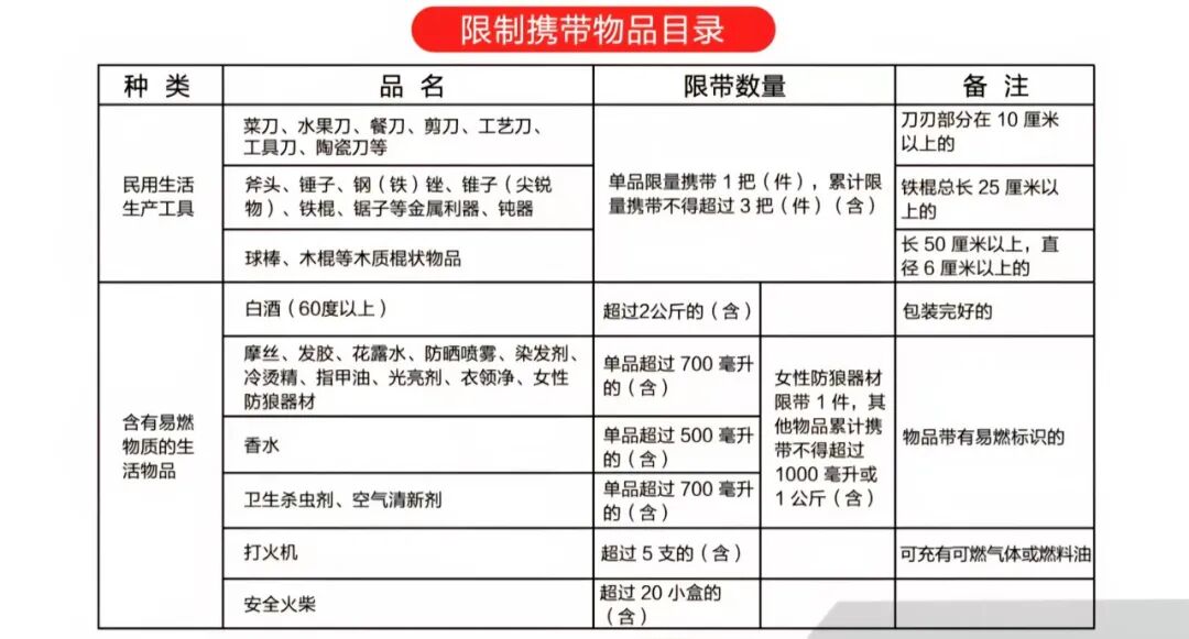 4.其他危险品与违禁品:管制器具、易燃易爆物品、有毒有害物品、严重异味或易污损设备的物品等,均禁止携带。