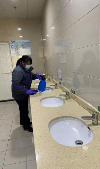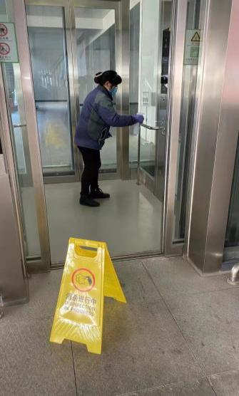 南通西站保洁人员全面落实消毒制度,加强对办公区域、停车场、卫生间以及公共区域进行通风、消毒工作。南通西站地域范围较大,保洁员除每天对公共区域喷洒消杀外,还坚持使用消毒液对栏杆、水龙头、瓷砖地面等进行清拖、擦拭消毒。为强化工作区域消杀工作,频次进一步加实加密,其中公共卫生间1天8次,电梯按钮在运行时间内每小时消杀1次,停车场每天消杀4次。