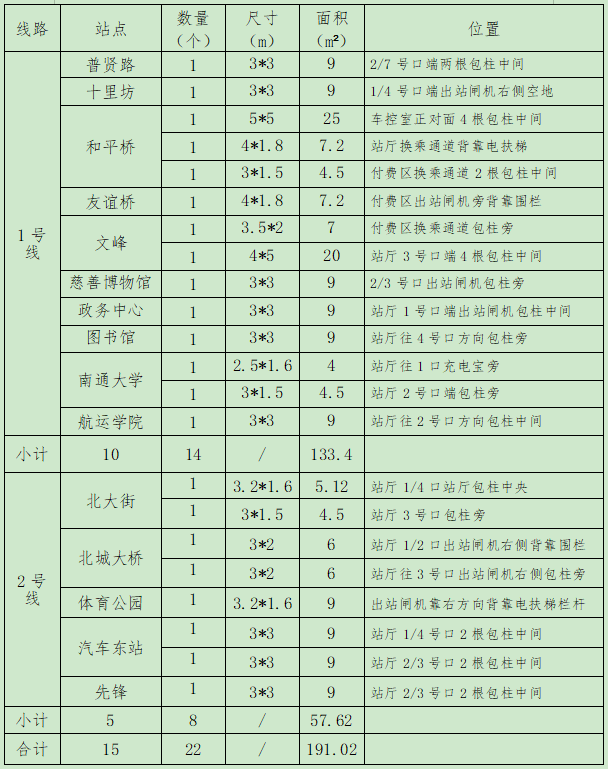 南通市城市轨道交通1、2号线一期工程站内空间租赁招租公告